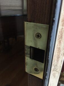 The door faces West. Most recently (in the summer), I noticed it getting harder and harder to lock. The hot weather was my clue. I noticed that the 3 locking pieces worked perfectly when not engaging with the other half of the door. It had to be weather related or heat related I figured.