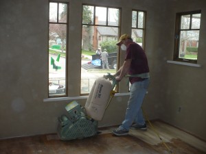 After installing they sanded the entire home and applied a coat of sealer that locks the natural color in. In Idaho we still use the Glitsa products and although they off GAS a ton of Volatile Organic Compounds or VOC’s, it make a great scuff and wear resistant hardwood floor finish. Where is the green in this process? Good question, do all the other things we do that are green count against the Glitsa? Once sealed we protect the floors to prevent damage till we are essentially done.